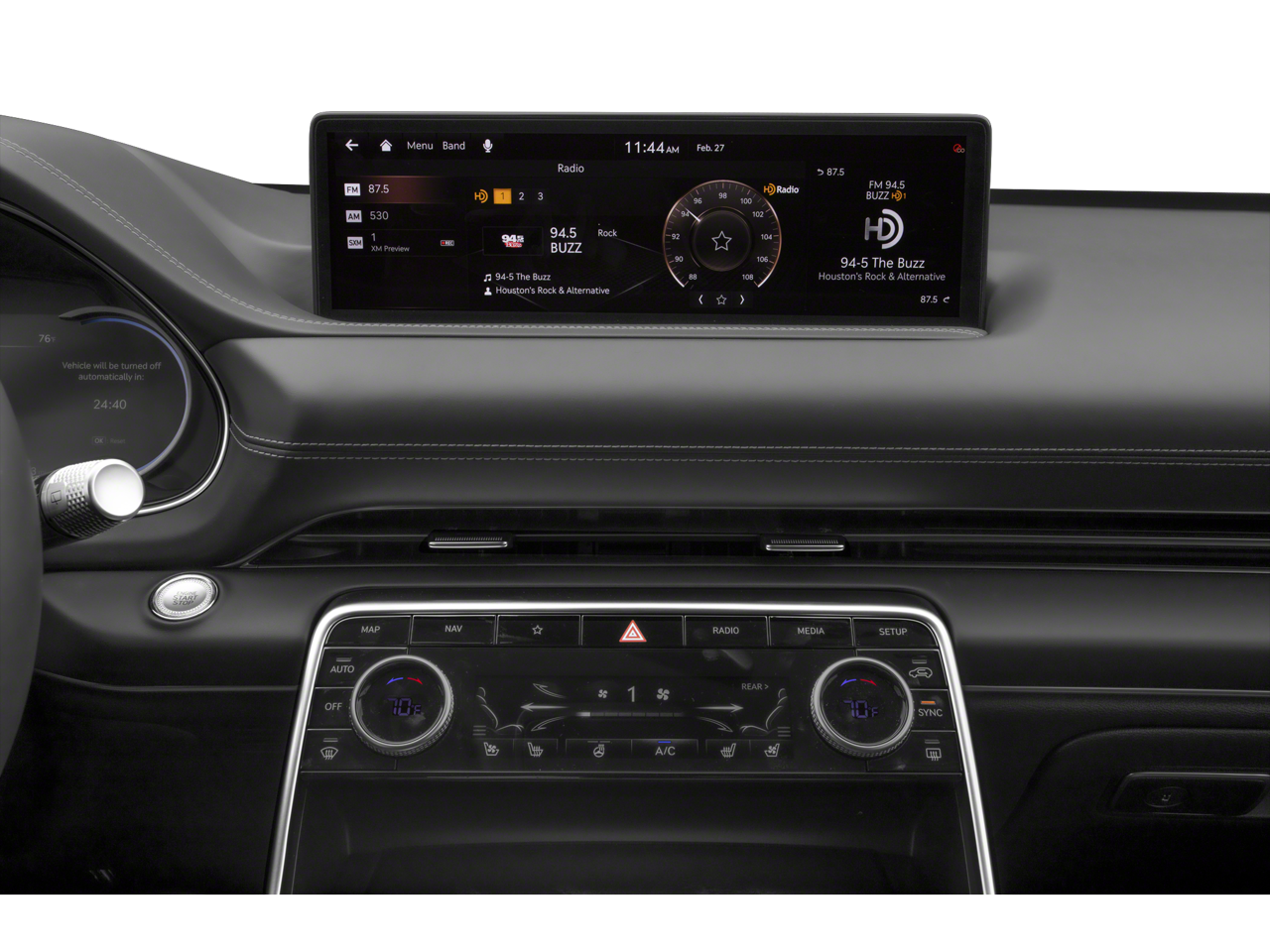- Radio: AM/FM/SiriusXM/HD Premium Audio System -inc: 6-channel internal amplifier, integrated navigation, 14.5" HD LCD screen, Apple CarPlay and Android Auto, Bluetooth® hands-free phone system w/audio streaming, steering wheel controls, USB and Genesis Connected Services