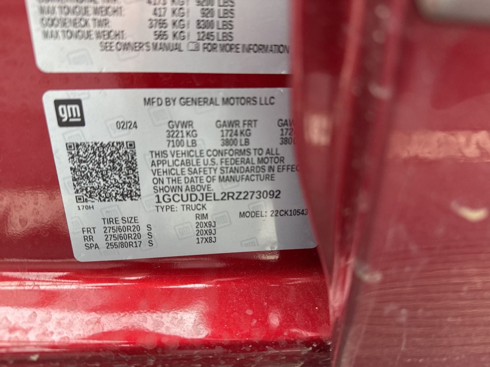 - Front Tire Size: 275/60R20SL